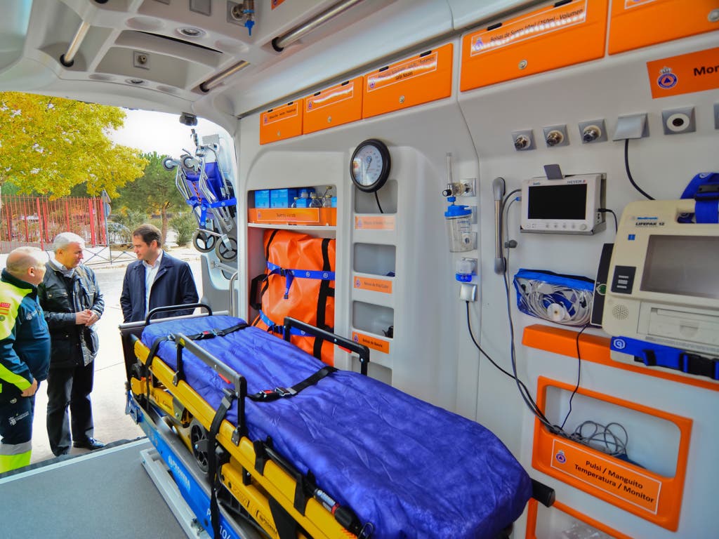 Además, tiene un desfibrilador para utilizar en aquellos casos de parada cardíaca y reanimación, respirador artificial para la ventilación mecánica y asistida de emergencia de niños y adultos y un monitor de tensión arterial y frecuencia cardíaca de modo constante, incluso durante la marcha del vehículo, para observar las pulsaciones del paciente.