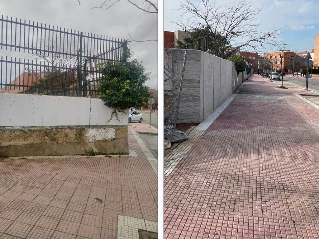 En este caso, se ha actuado ampliando la acera en la calle Francia en el tramo situado junto al IES Victoria Kent, eliminando el esquinazo existente en el muro del centro educativo que dificultaba el tránsito peatonal.