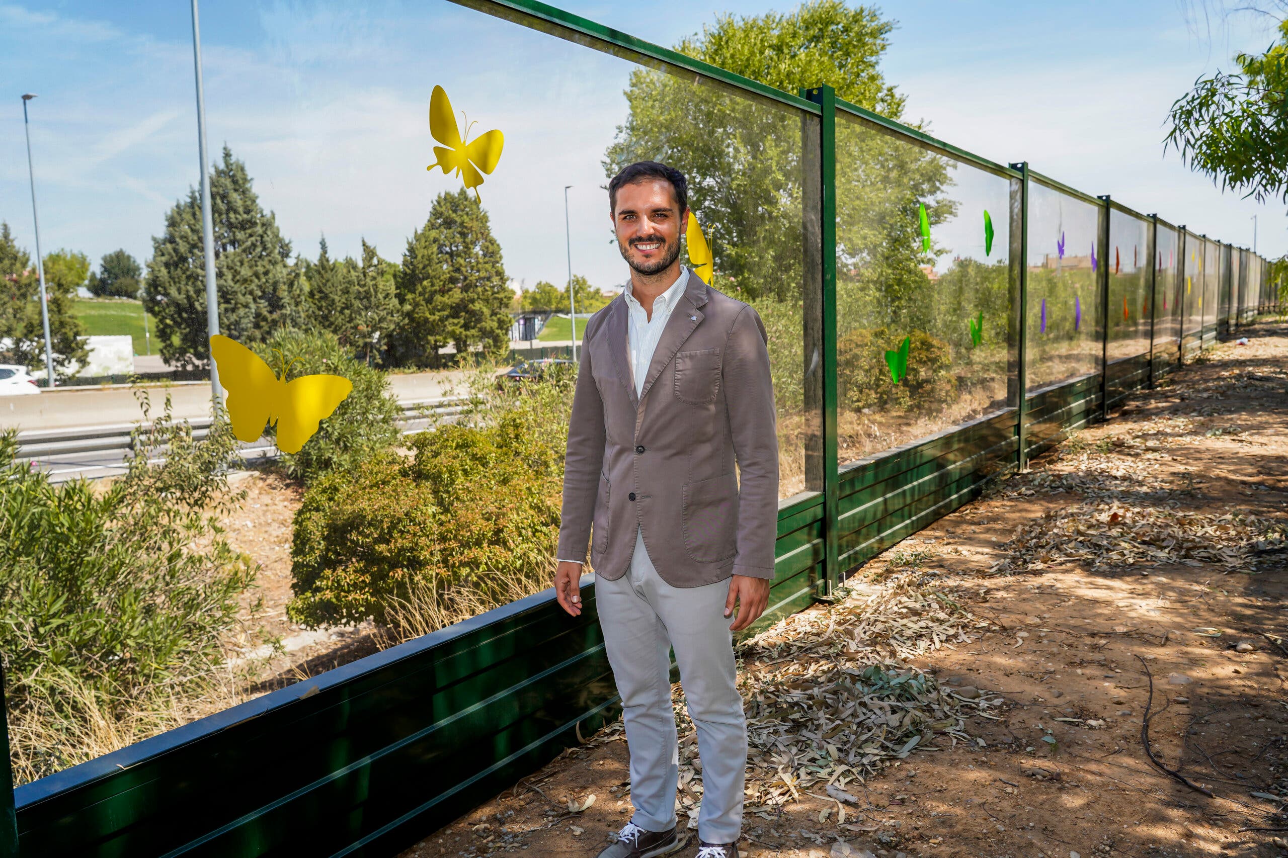 El alcalde de Torrejón de Ardoz, Alejandro Navarro, ha visitado este lunes la nueva pantalla instalada en el barrio de los Fresnos a lo largo de la calle Apolo sobre el talud vegetal colindante a la M206-Avedida de la Luna.