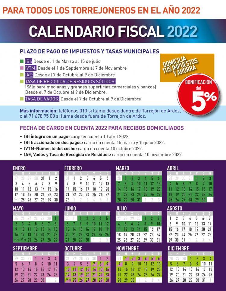 El calendario fiscal para el abono de los impuestos y tasas municipales en 2022 es para el IBI desde el 1 de marzo al 15 de julio, para el IVTM (numerito) desde el 1 de septiembre al 7 de noviembre. En el caso del IAE (Impuesto de Actividades Económicas) y la Tasa de Vados el plazo será desde el 7 de octubre al 9 de diciembre. Ignacio Vázquez ha resaltado que «Torrejón es la segunda ciudad con el IBI más bajo de la Comunidad de Madrid».