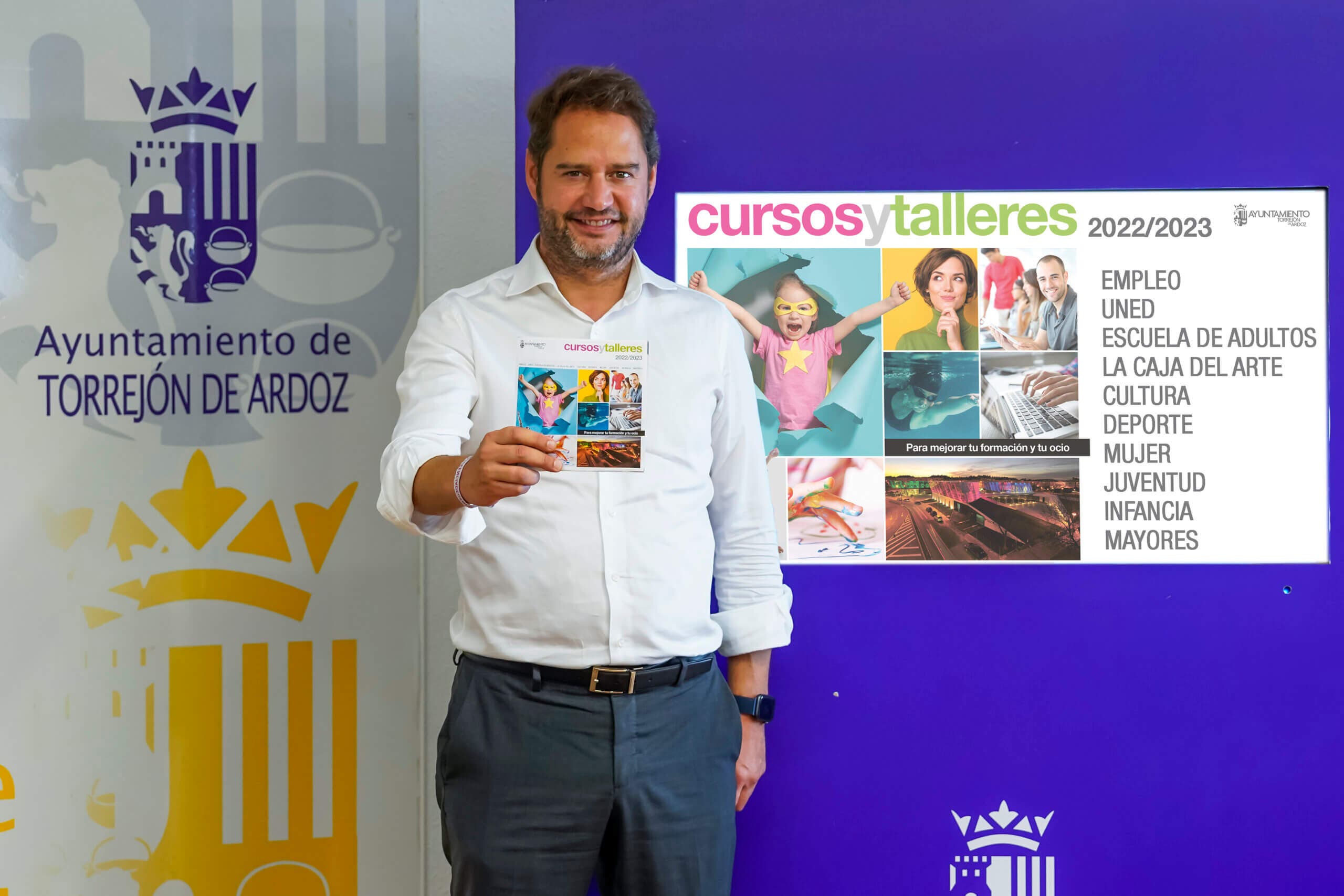 El alcalde de Torrejón de Ardoz, Ignacio Vázquez, ha presentado esta semana la nueva propuesta de cursos y talleres para los torrejoneros en la edición 2022-2023. Una oferta formativa compuesta por más de 1.000 cursos y talleres con 18.500 plazas de Empleo, Cultura, UNED, Deportes, Mujer, Infancia, Juventud, Mayores y Educación de Adultos, además de la formación online. Toda la información puede encontrarse en la web municipal www.ayto-torrejon.es así como en la publicación que se buzonea.