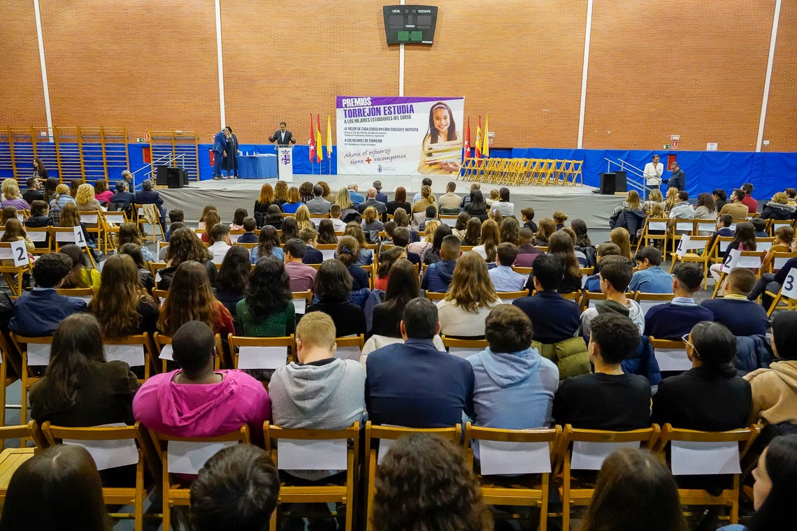 El mejor alumno de cada curso recibió un diploma y un cheque regalo por un importe de 40 euros en el caso de Primaria y de 80 euros para Secundaria. Además, los mejores estudiantes de Torrejón a nivel general recibieron una tarjeta de 240 euros. «Se trata de un bonito recuerdo del que os acordaréis dentro de algunos años y pensaréis los buenos estudiantes que habéis sido y que el esfuerzo realizado ha merecido la pena. Sin embargo, esto no acaba aquí».