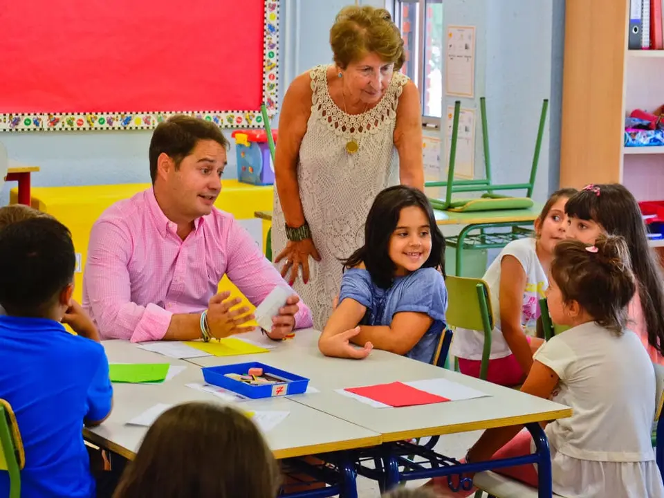 En la imagen de portada: El alcalde de Torrejón junto a varios alumnos en el colegio Pinocho de la localidad (Ayto. Torrejón de Ardoz).