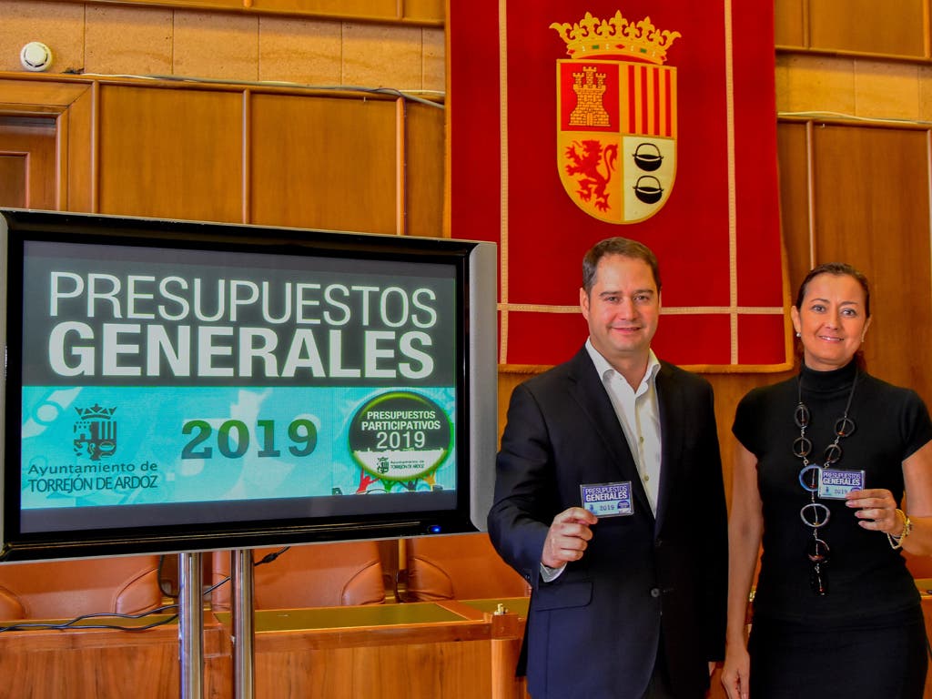 El alcalde de Torrejón de Ardoz, Ignacio Vázquez, y la concejala de Transparencia, Hacienda y Contratación, Lola Navarro, han presentado este lunes los Presupuestos del Ayuntamiento para el año 2019: 104 millones de euros con 17 millones dedicados a inversiones.