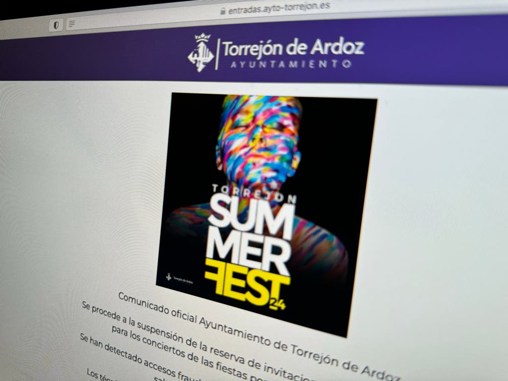 El Ayuntamiento de Torrejón de Ardoz ha emitido esta madrugada un comunicado oficial para anunciar que «se procede a la suspensión de la reserva de invitaciones de forma telemática para los conciertos de las Fiestas Populares por motivos de seguridad».