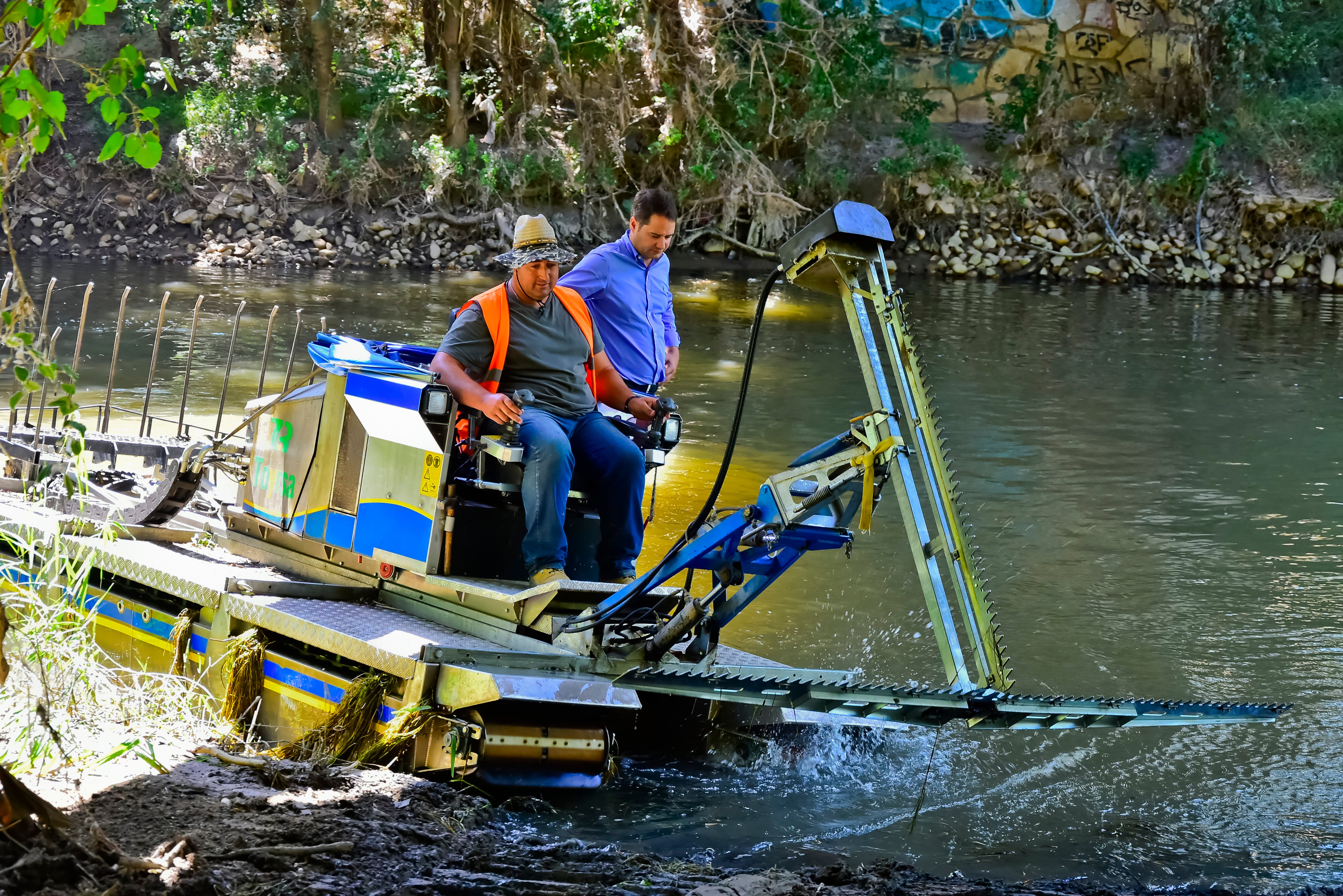 El alcalde, Ignacio Vázquez, ha visitado en la zona fluvial del Puente de Hierro, próximo al Parque Europa y al Parque de Cataluña, la máquina, siendo el quinto año que se pone en funcionamiento un dispositivo de estas características, que actúa principalmente sobre un mosquito pequeño, negro y muy molesto, denominado mosca negra, que llega con el calor y que se alimenta y coloca sus larvas sobre las plantas acuáticas. De ahí que disponga de una cuchilla sumergida, que va cortando estas plantas acuáticas que se encuentran en el cauce del río Henares a su paso por la ciudad.