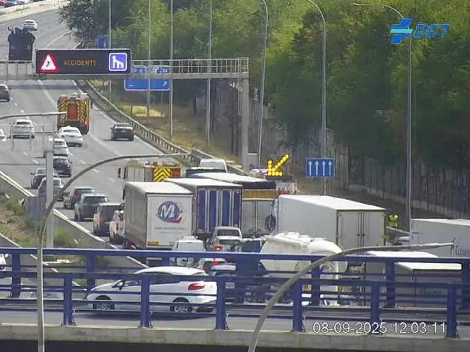 El siniestro ha obligado a cortar dos carriles y ha generado 2 kilómetros de atascos en sentido salida de Madrid.
