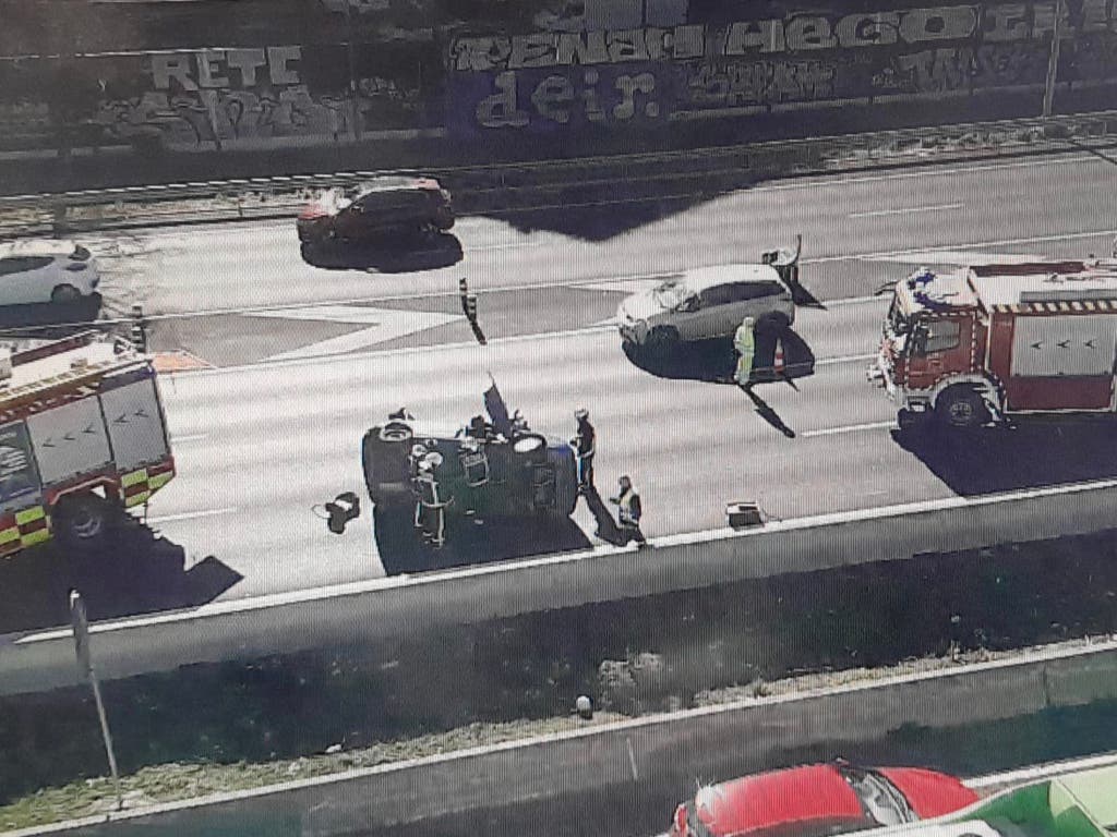 Un coche vuelca en la A-2, a la altura de Torrejón de Ardoz