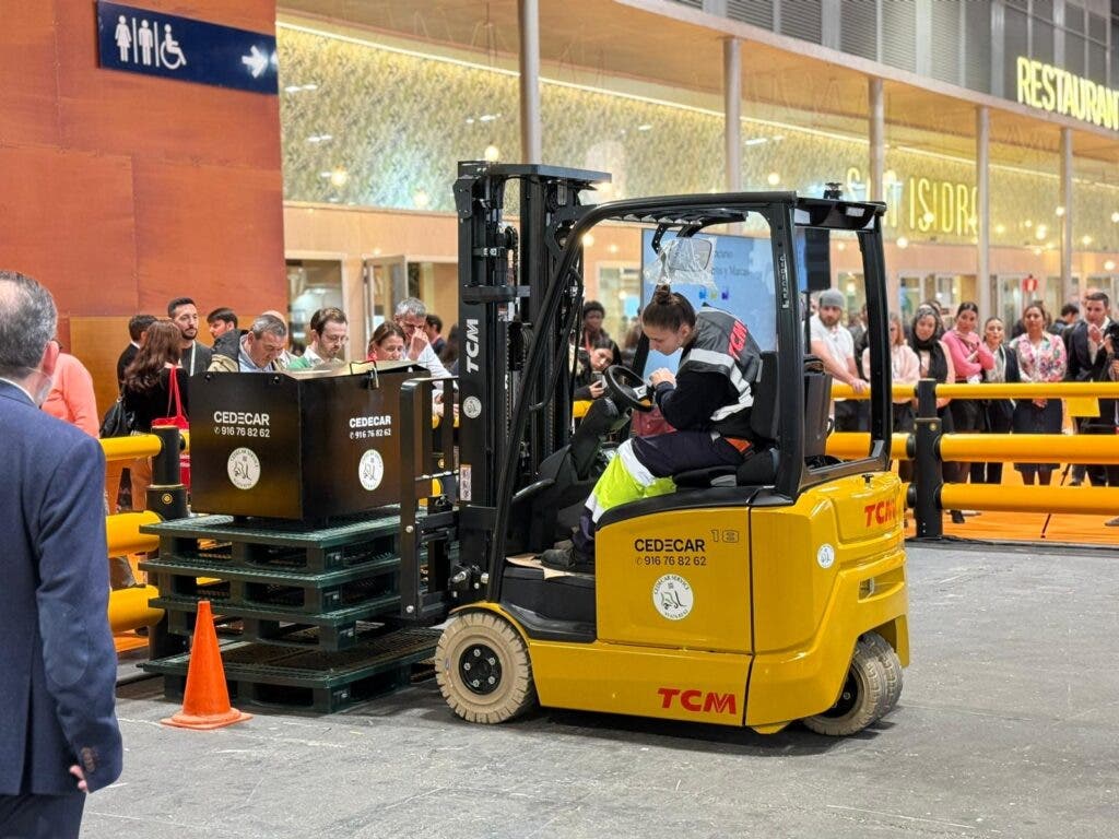 Sonia Moya realizó la prueba que le dio la victoria sobre una carretilla TCM 18 de tres ruedas, cedida por la empresa CEDECAR, distribuidor del vehículo industrial.