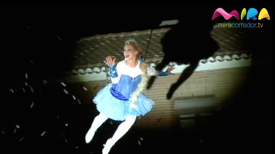 La compañía belga Theatre Tol representó Corazón de Nieve, un número aéreo de los que dejan la boca abierta. Además la empresa torrejonera de Reyes Abades puso el broche final al espectáculo con una sorpresa envuelta en luz y grandes efectos especiales con Frozen como protagonista.