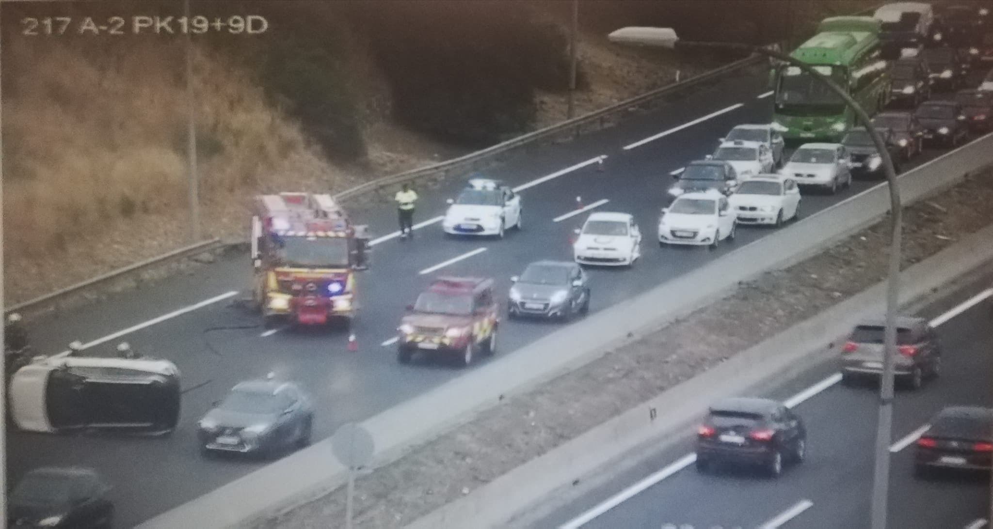 Un coche ha volcado lateralmente este jueves a primera hora a la altura del kilómetro 20 de la A-2, en Torrejón de Ardoz, ha informado el 112 de la Comunidad de Madrid.