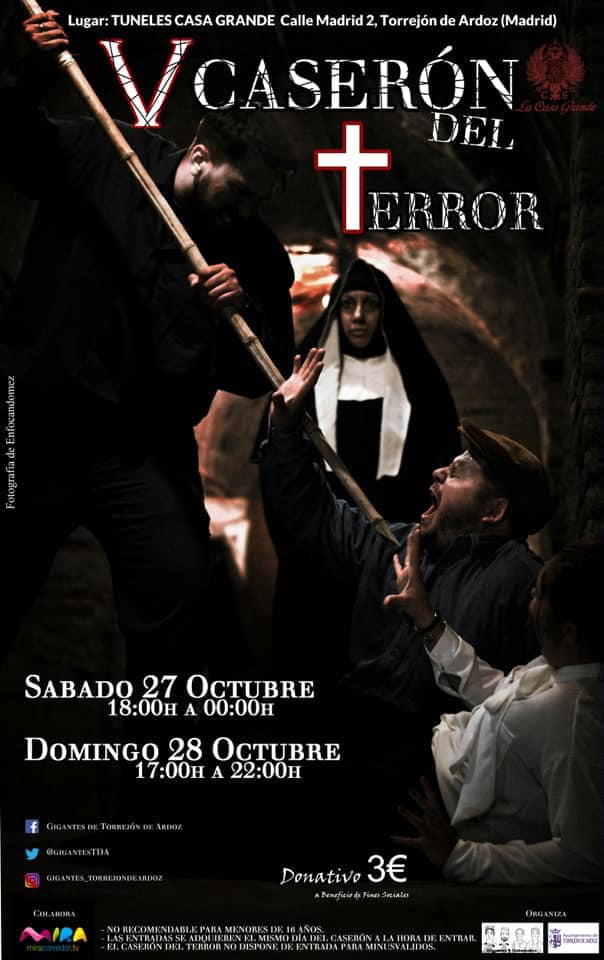El Caseron del Terror de La Casa Grande de Torrejón de Ardoz volverá a abrir sus puertas por Halloween con un nuevo espectáculo terrorífico. El evento se ha convertido año tras año en un clásico por ser uno de los más visitados y mejor logrados del Corredor del Henares.