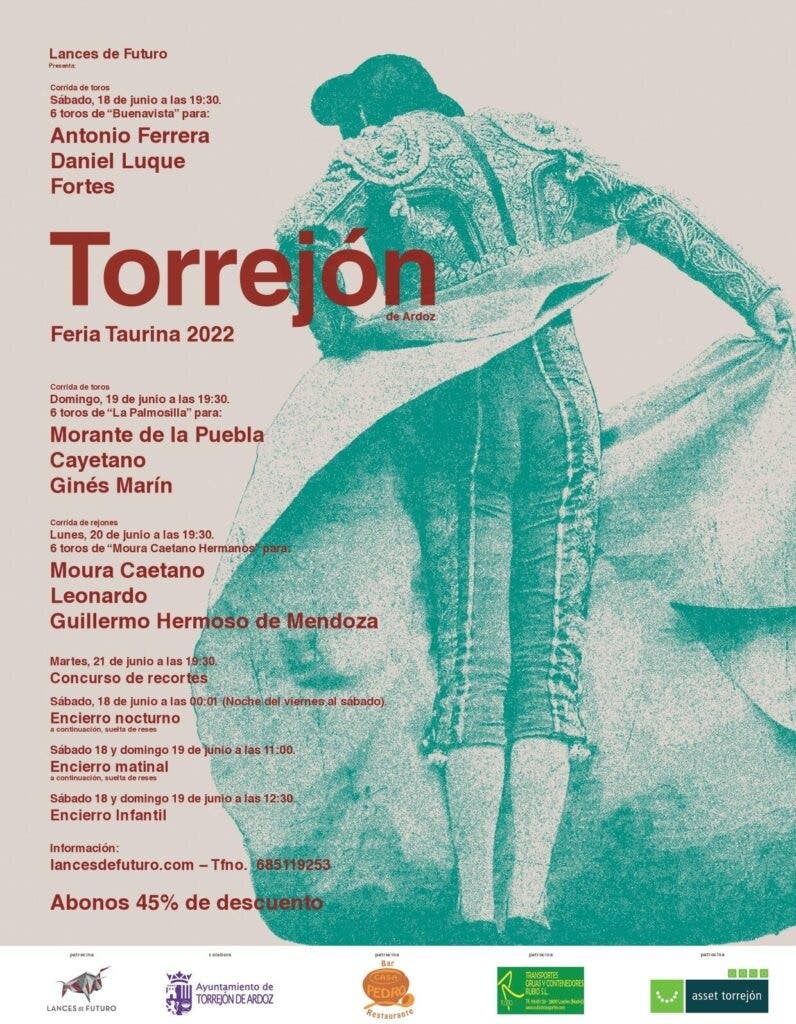 Desde este viernes, 22 de abril, estarán a la venta los abonos para la Feria Taurina de las Fiestas Populares de Torrejón de Ardoz 2022, que llegan con un brillante cartel, que incluye a Morante de la Puebla y Cayetano, entre otros grandes toreros y rejoneadores, además de los tradicionales encierros y uno nocturno.