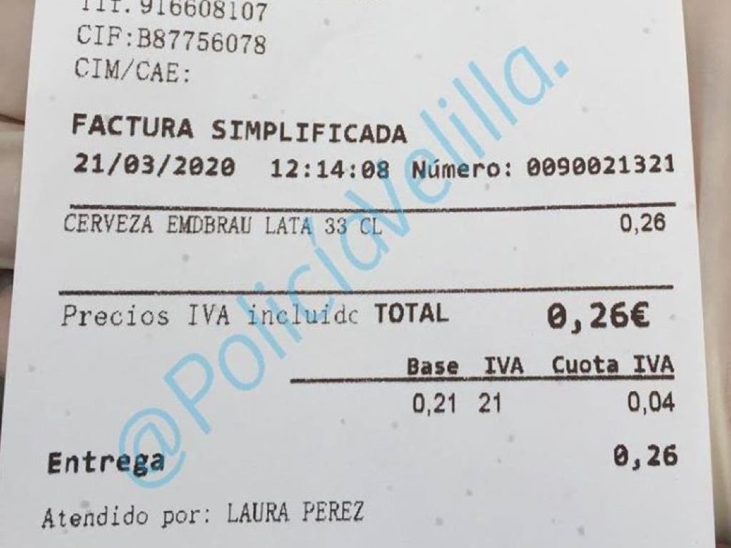La Policía Local de Velilla de San Antonio ha denunciado a un vecino de la localidad que salió de casa para ir a comprar cerveza, y para demostrarlo ha publicado el ticket de compra incautado.