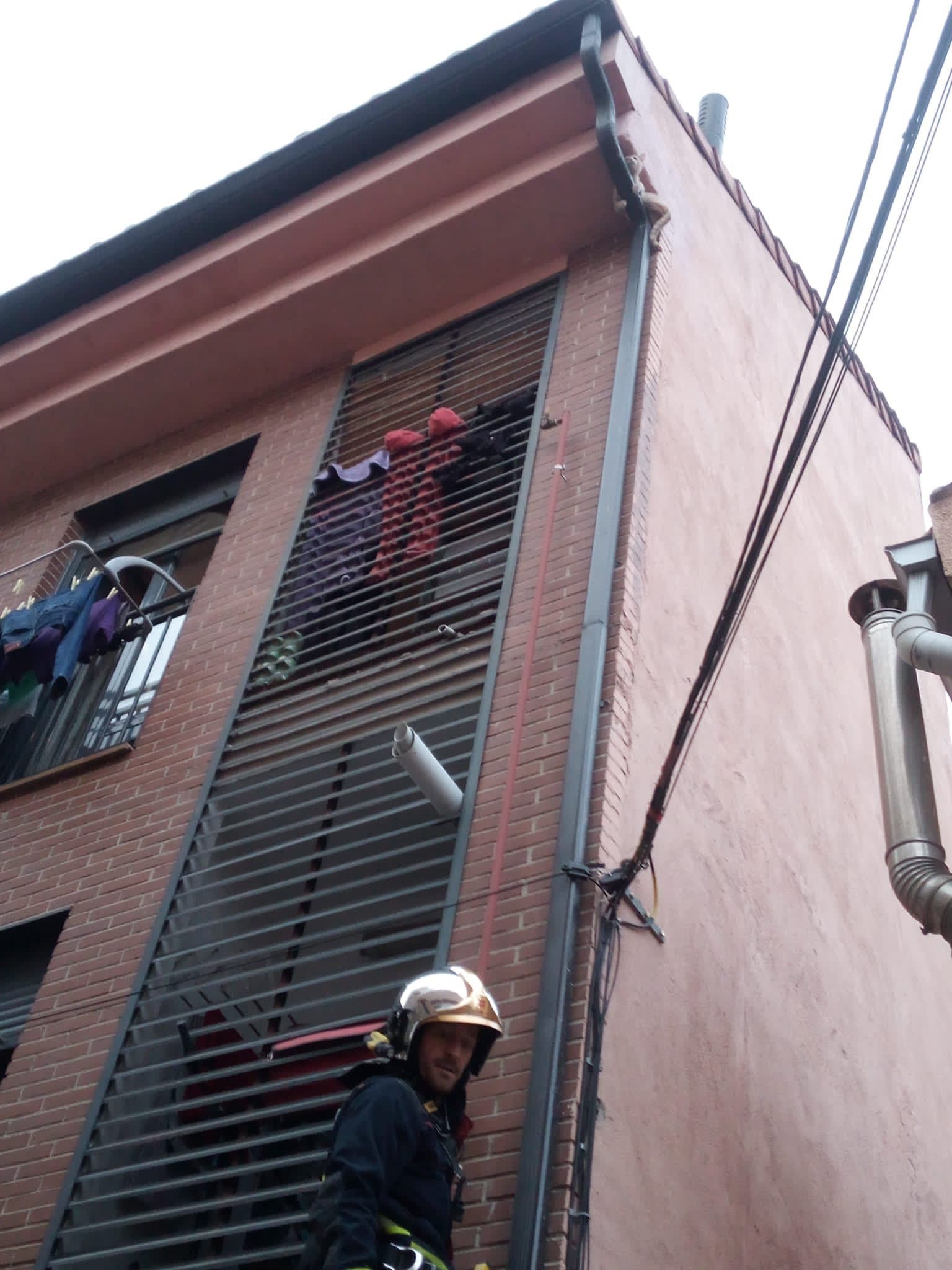 Finalmente han tenido que subir a por él con una escalera para evitar que cayera al vacío, pero, al ver a los Bomberos, se ha asustado y ha terminado metiéndose por la ventana de una vivienda.