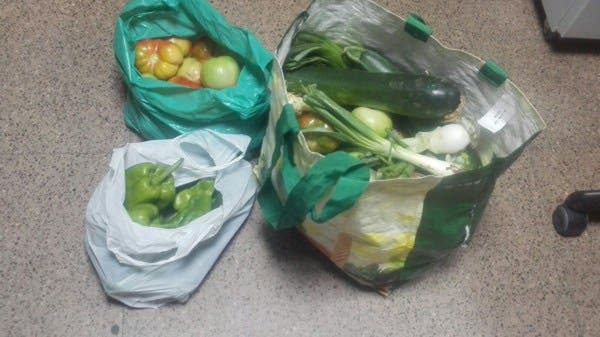 Tras una pequeña inspección ocular por la zona, los policías localizaron las bolsas dentro de una empresa colindante donde se les había requerido su identificación. Dichas bolsas se encontraban llenas de hortalizas: tomates, cebollas, pimientos, calabacines...