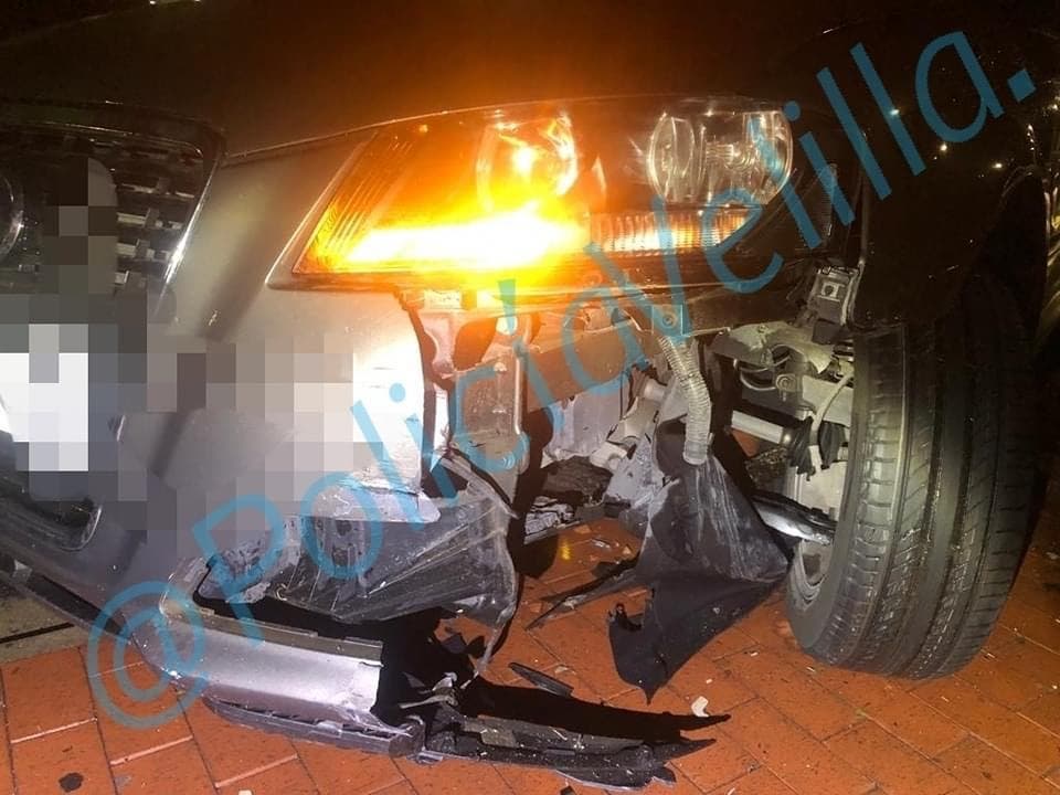 Una conductora ebria golpea una furgoneta y acaba chocando contra un bolardo en Velilla