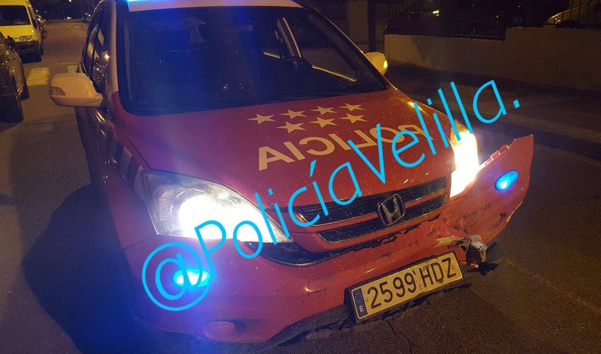 El conductor, que iba encapuchado, al percatarse de la presencia policial inició una maniobra de huida contra el vehículo de la Policía, chocando frontalmente contra él, y volviendo después a embestir el coche patrulla.