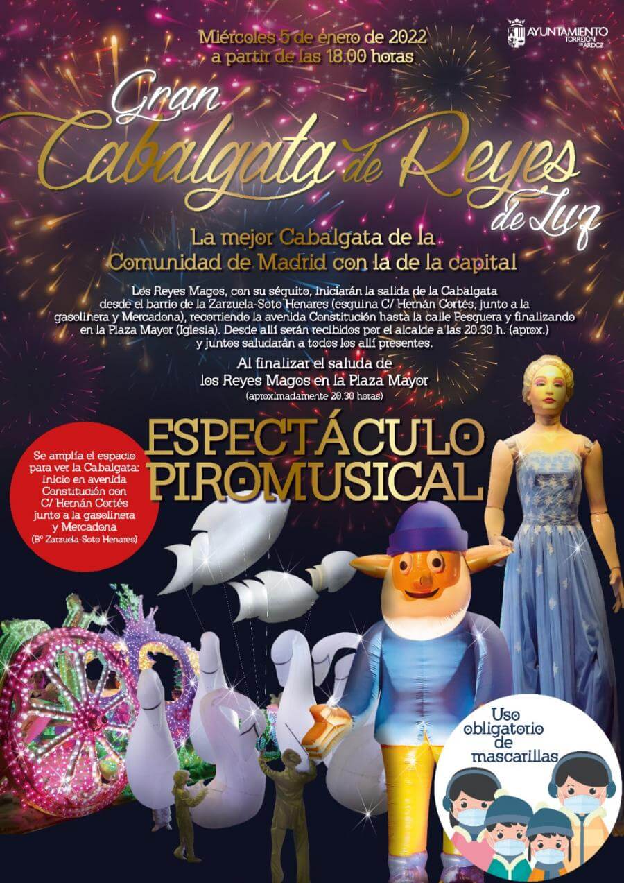 Además, se amplía el espacio para ver la Cabalgata: inicio en Avenida Constitución con c/ Hernán cortés junto a la gasolinera y Mercadona (Barrios Zarzuela-Soto del Henares).