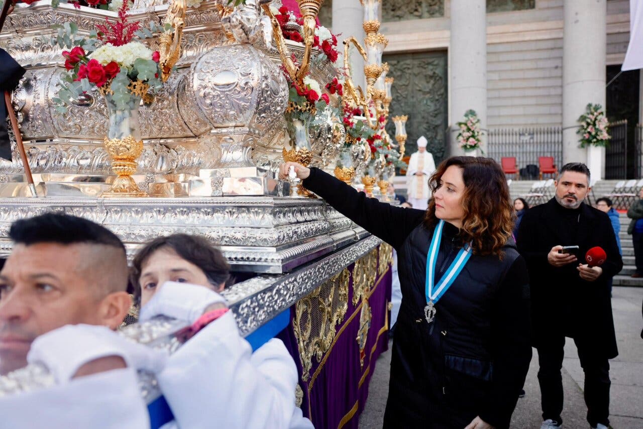 La presidenta ha portado la Medalla de Honor de la Cofradía de la Real e Ilustre Esclavitud y Santo Rosario de Santa María La Real de la Almudena que le fue impuesta en 2021.