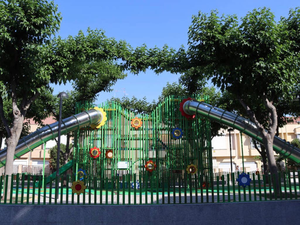 En el tramo central, se ha instalado un juego infantil de grandes dimensiones diseñado especialmente para este espacio y rodeado por un vallado protector. El juego ofrece distintos elementos y cuenta con dos toboganes gigantes en los extremos.