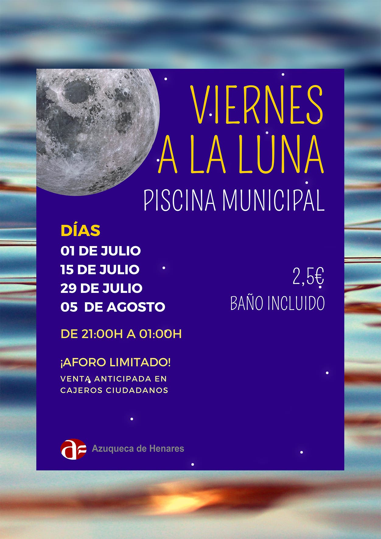 El programa de ocio veraniego Viernes a la Luna vuelve desde el 1 de julio, con cuatro sesiones nocturnas en la piscina municipal amenizadas por distintas actuaciones, entre el 1 de julio y el 5 de agosto.