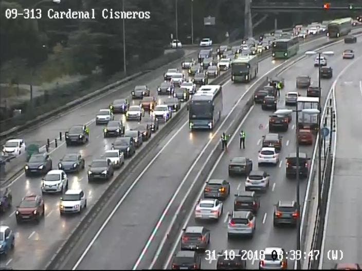 Además se han cortado varios carriles en los túneles de Plaza de Castilla sentido Plaza de Cuzco, Cristo Rey sentido A-6, Manuel Becerra en ambos sentidos y Azca.