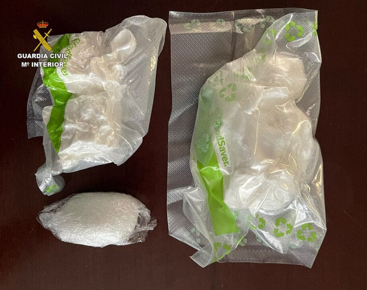 Se mostró en todo momento esquivo a los requerimientos de los agentes, motivo por el que decidieron registrar el vehículo, localizando en el interior de un habitáculo existente debajo de la alfombrilla del asiento del conductor tres paquetes de plástico que contenían una sustancia blanquecina que podría tratarse de cocaína.