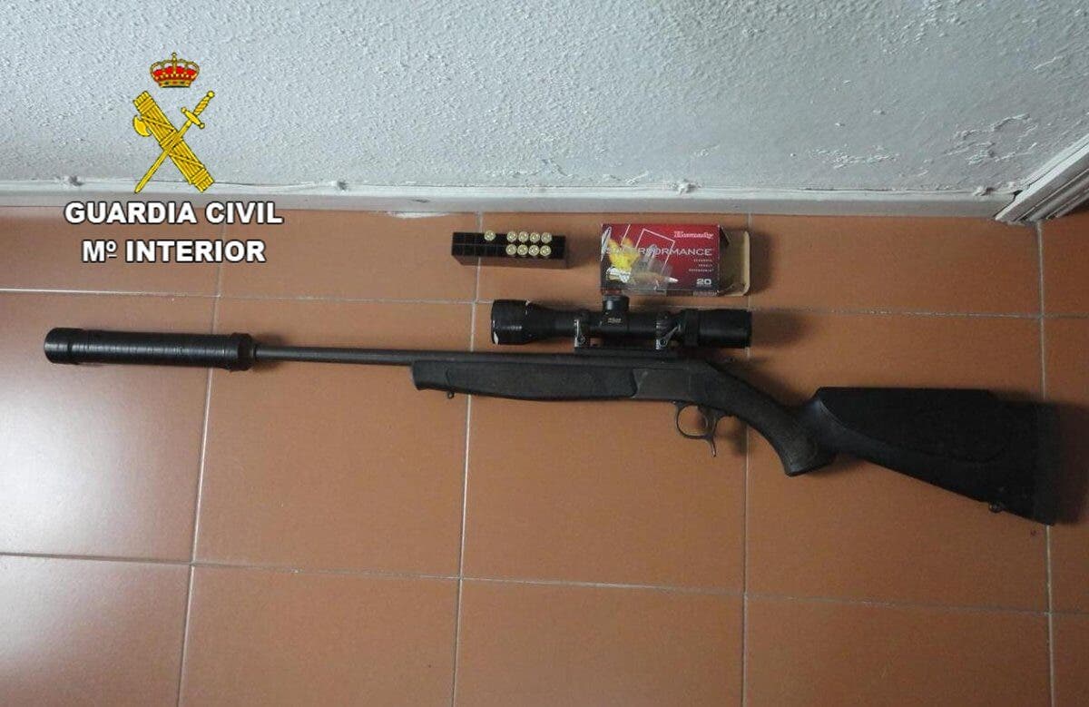 Horas más tarde, lograron localizar en el término municipal de Alcolea del Pinar, oculto entre unos arbustos, un arma de fuego, un silenciador, un visor y munición que los detenidos habían escondido en su huída.