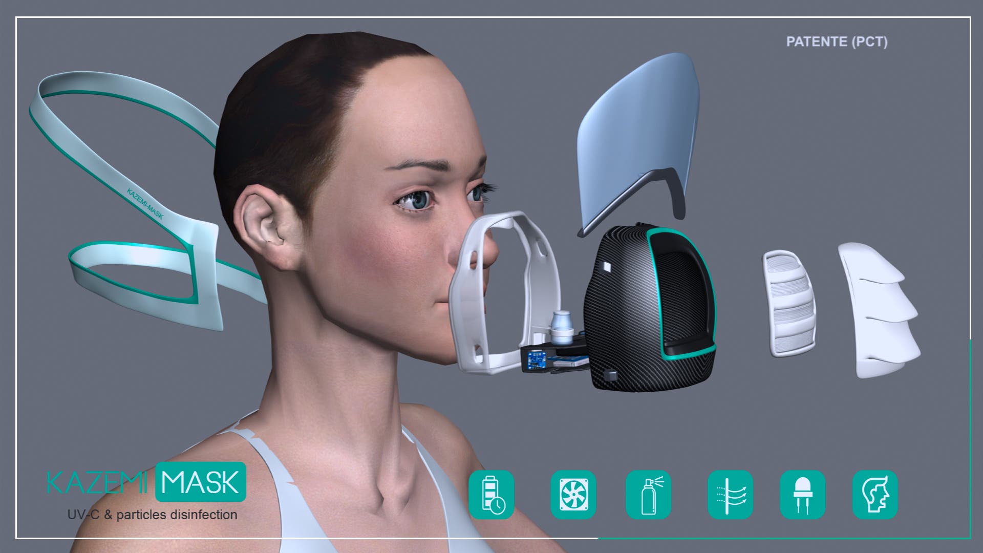 La invención del doctor Kazemi es «un novedoso y eficiente equipo de protección personal: un dispositivo inteligente preventivo y activo a la vez, capaz de neutralizar al coronavirus. La KazemiMask presenta dos partes principales: una estructura de silicona hipoalergénica y una pantalla protectora para los ojos, con un peso estimado de unos 100 gramos y un coste de entre 30 y 50 euros, siempre que su producción resultara masiva.