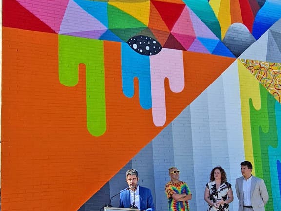 «Desde el Ayuntamiento, queremos dar las gracias a Okuda por colorear Paracuellos de Jarama y acercar la vanguardia del Muralismo a nuestro municipio. Sabemos que tus inicios arrancan en el grafiti y nosotros hemos apostado por llenar Paracuellos de este arte urbano en el que padres e hijos han participado», ha afirmado el alcalde. «Verás que nada más subir las cuestas, las que dan el nombre de la etapa rompepiernas de la Vuelta a Madrid que arranca desde nuestro municipio este sábado, el municipio te recibe con un gran grafiti con los brazos abiertos. Nos encantaría contar contigo para próximos proyectos que aúnen vanguardia y arte al alcance de todos. Enhorabuena Colegio Miramadrid por haber tenido esta iniciativa de sacar el arte a vuestras fachadas», ha añadido el regidor.