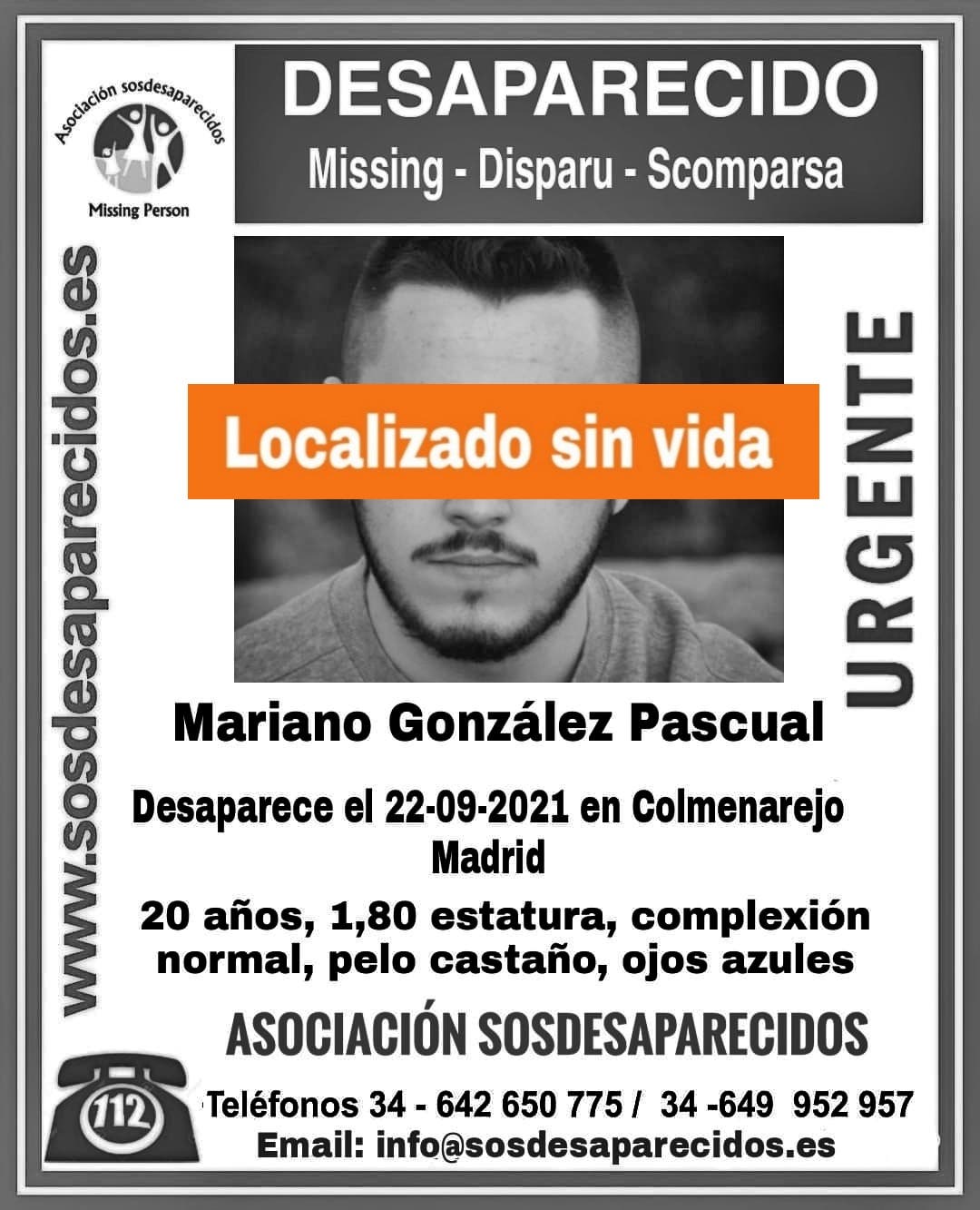 La asociación SOS Desaparecidos ya ha desactivado la alerta tras haber difundido un cartel con su foto y su descripción para tratar de localizarlo.