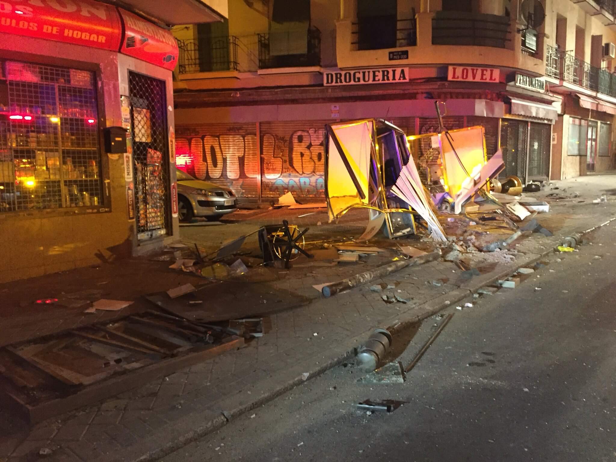 Un vehículo ha perdido el control en la calle Puerto de Canfranc de Puente de Vallecas esta pasada noche y ha arrollado a su paso mobiliario urbano, arrancando un quiosco de la ONCE hasta que el coche ha quedado volcado, según ha informado Emergencias Madrid.