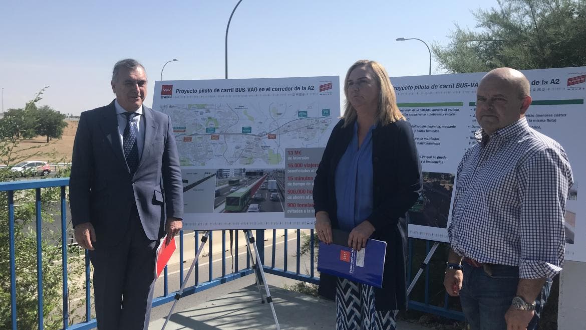 La Comunidad de Madrid ha vuelto a reclamar una vez más al Ministerio de Fomento la puesta en marcha del nuevo carril Bus-VAO de la A-2. La consejera de Transportes, Vivienda e Infraestructuras en funciones, Rosalía Gonzalo, se ha reunido este jueves con varios vecinos de Torrejón de Ardoz y con el segundo teniente de alcalde de la localidad, Valeriano Díaz, para conocer de primera mano los atascos que sufren a diario en sus desplazamientos de entrada y salida a Madrid.