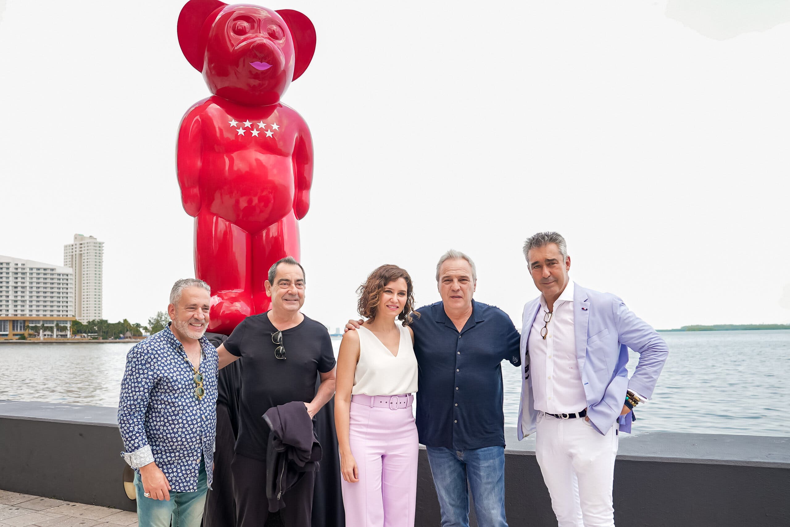 Antes del encuentro, la presidenta ha visitado una rotonda que llevará en breve el nombre de la Comunidad de Madrid y donde se instalará una escultura del artista español Eladio de Moro dEmo. Se trata de uno de sus populares osos, de color rojo y unos dos metros de altura, con la bandera de la Comunidad de Madrid pintada.