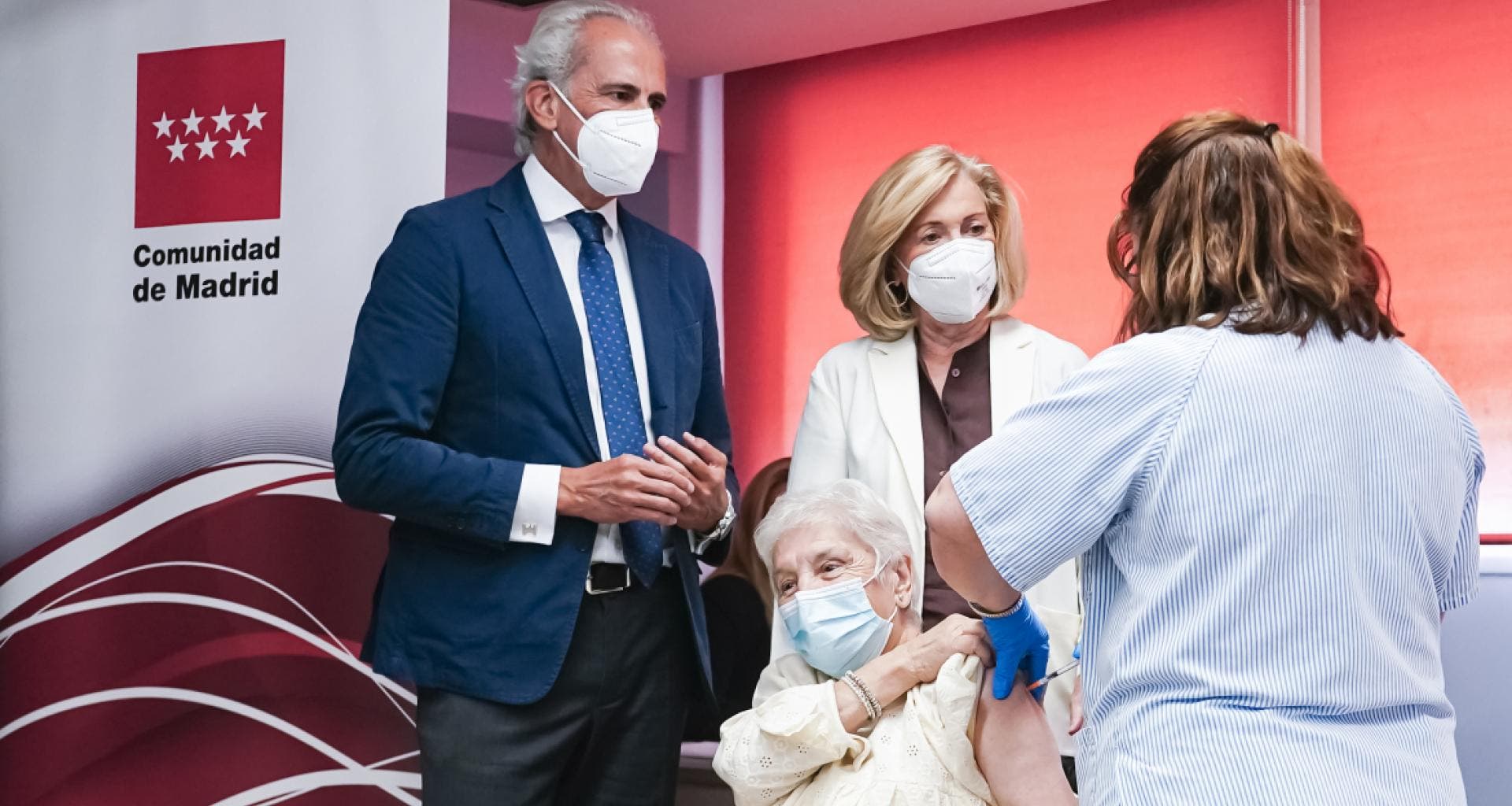 La consejera de Familia, Juventud y Política Social, Concepción Dancausa, y el consejero de Sanidad, Enrique Ruiz Escudero, han visitado hoy la Residencia Pública de Mayores de Vallecas, donde se ha inmunizado a Nicanor y María, los mismos usuarios que recibieron la primera dosis el 27 de diciembre de 2020, jornada en la que arrancó en España la primera campaña para frenar la enfermedad.