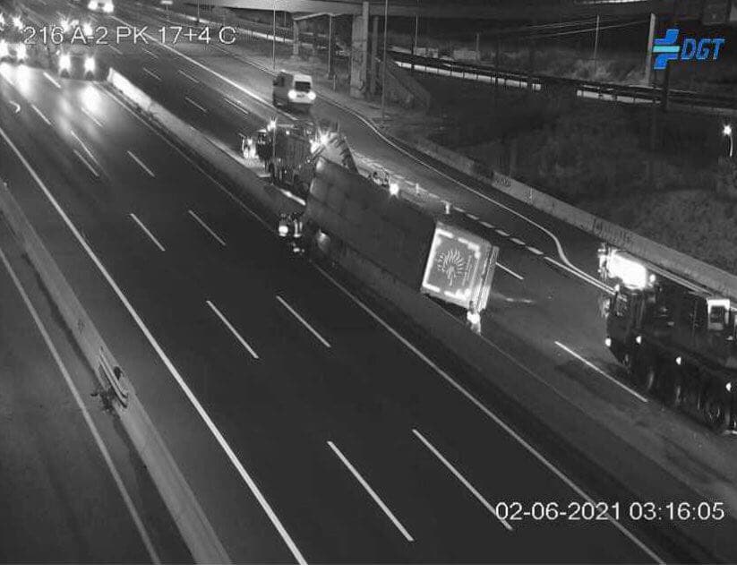 Reabierta la A-2 en San Fernando diez horas después del vuelco de un camión