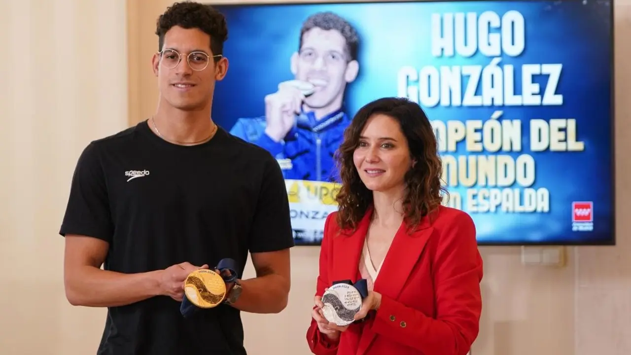 Ayuso recibe al nadador de Rivas Hugo González tras proclamarse campeón del mundo: «Ejemplo de humildad, talento, disciplina y sacrificio» La presidenta le ha deseado la «mejor suerte» para los Juegos Olímpicos que se celebran este verano en París. Redacción MiraCorredor 28/02/24