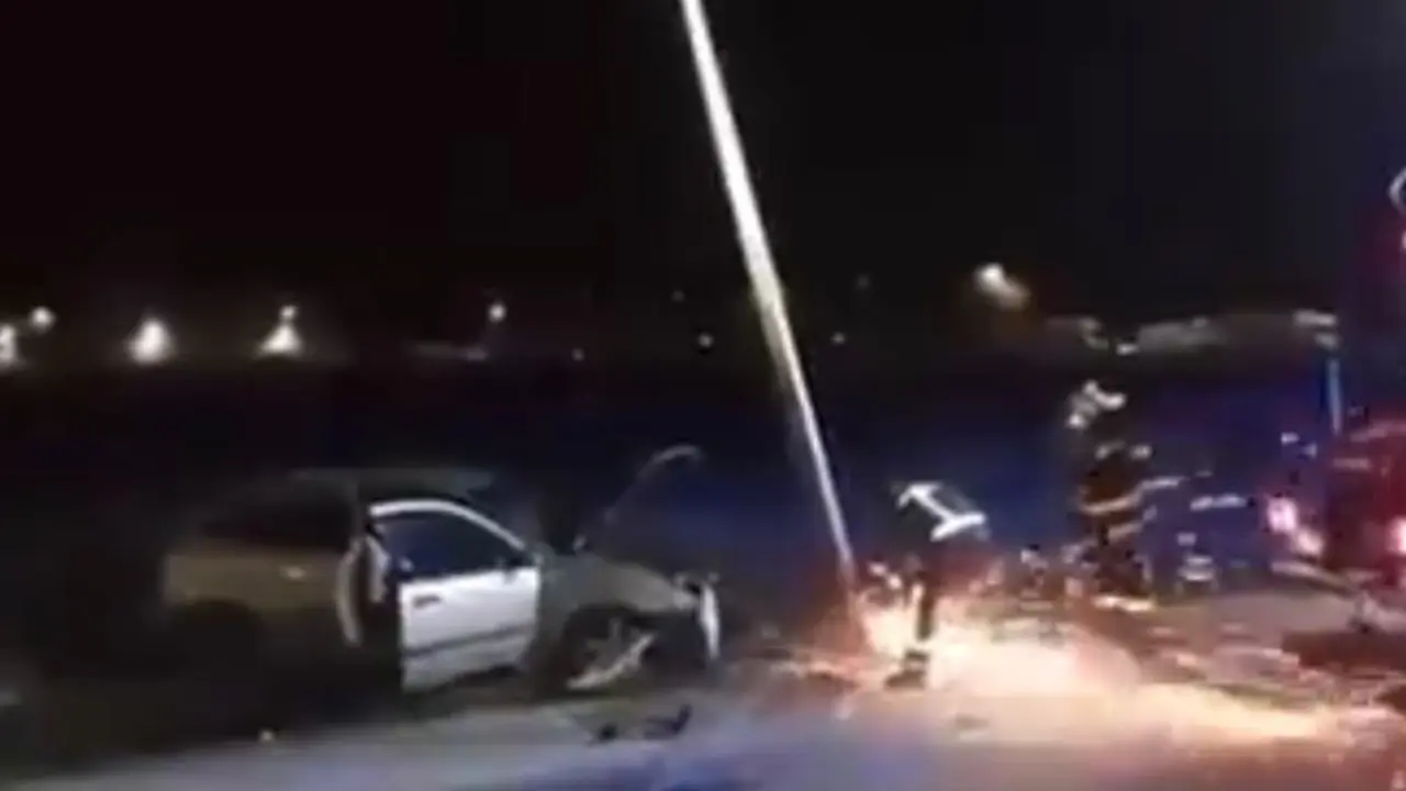 Una conductora ebria empotra su coche contra una farola en Rivas Vaciamadrid Los Bomberos tuvieron que intervenir para retirar la farola con una radial. Redacción MiraCorredor 26/01/23