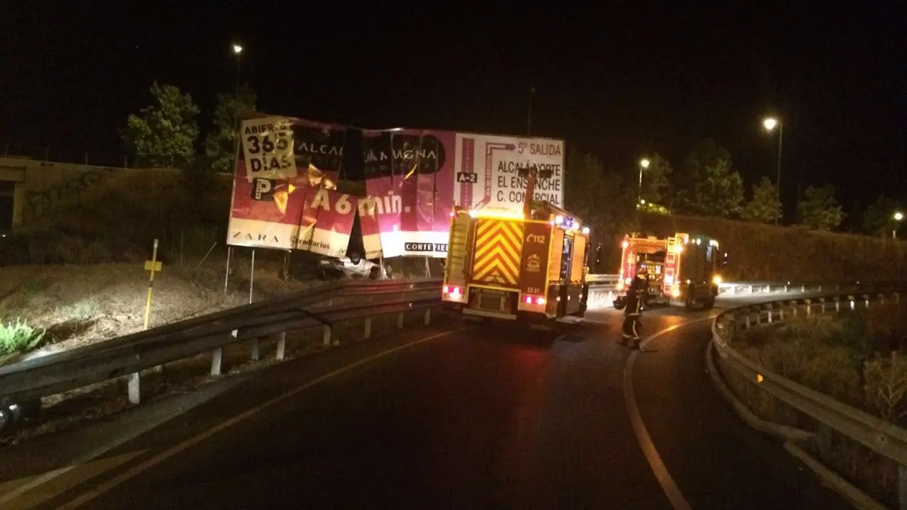 Un turismo se estrella contra una valla publicitaria en la A-2, Alcalá Esta pasada madrugada ocurría un espectacular accidente en la A-2. Redacción MiraCorredor 31/08/16