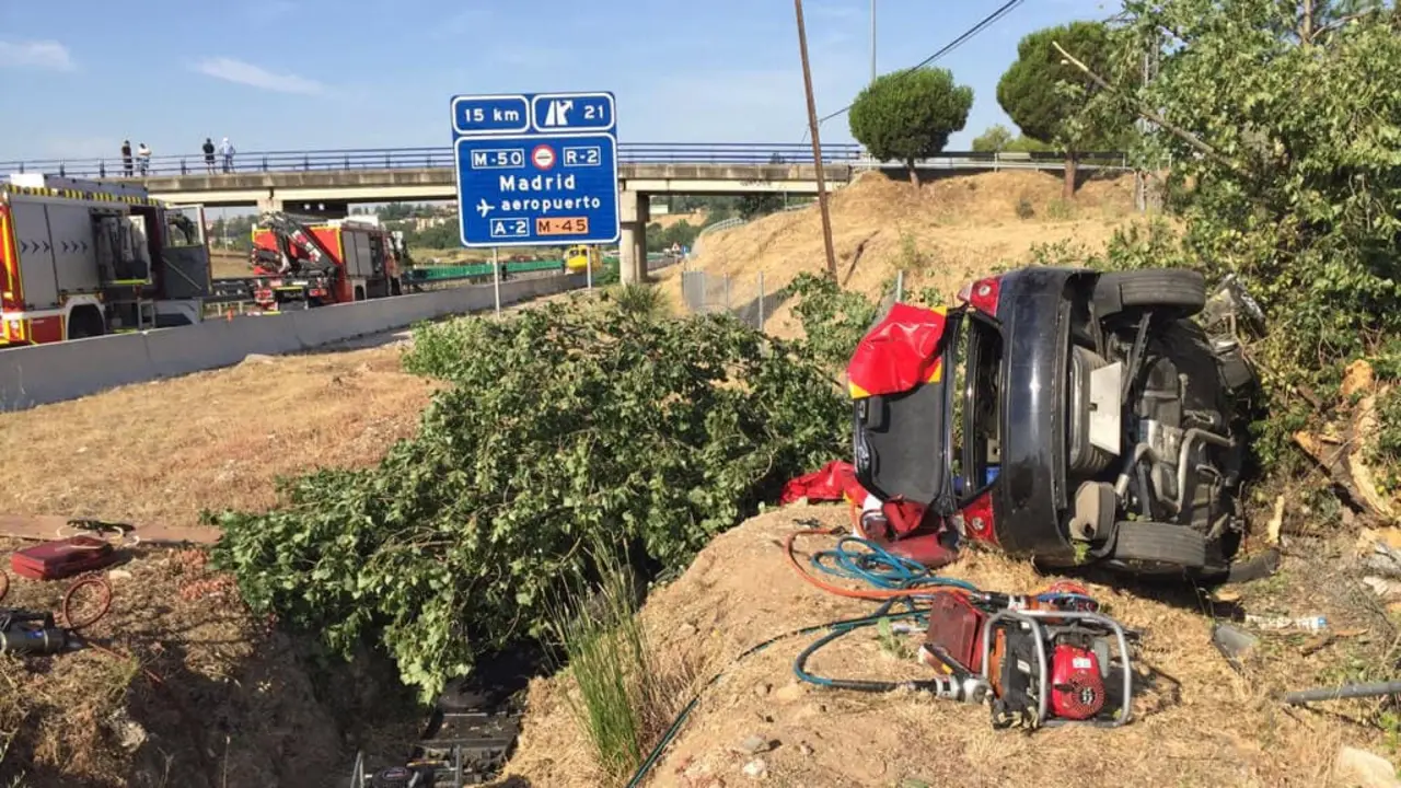 Dos heridos graves al chocar su vehículo contra un poste en la M511 Dos de los tres ocupantes del vehículo han quedado atrapados en su interior. Redacción MiraCorredor 05/08/16