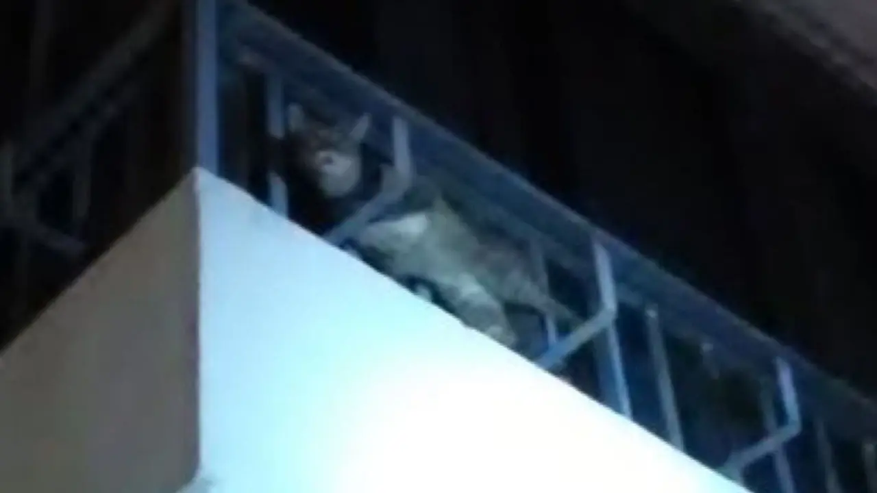 Los Bomberos rescatan a un gato atrapado en un balcón de un piso que se encontraba cerrado en Azuqueca de Henares.
