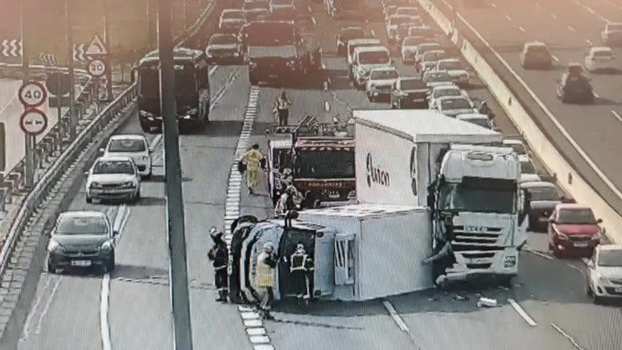 Aparatoso accidente entre dos camiones en la A-2, en Alcalá de Henares El siniestro ha provocado fuertes retenciones entre los kilómetros 38 y 33, sentido Guadalajara. Redacción MiraCorredor 13/01/20