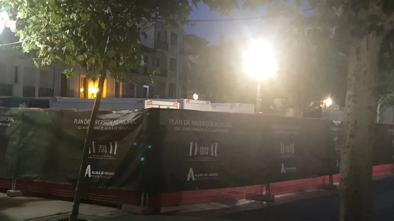 Casetas de obra en la Plaza de Cervantes de Alcalá de Henares en plenas Ferias Ha terminado la primera fase de las obras de semipeatonalización pero el aspecto que presenta la plaza ha sido objeto de críticas. Redacción MiraCorredor 25/08/18