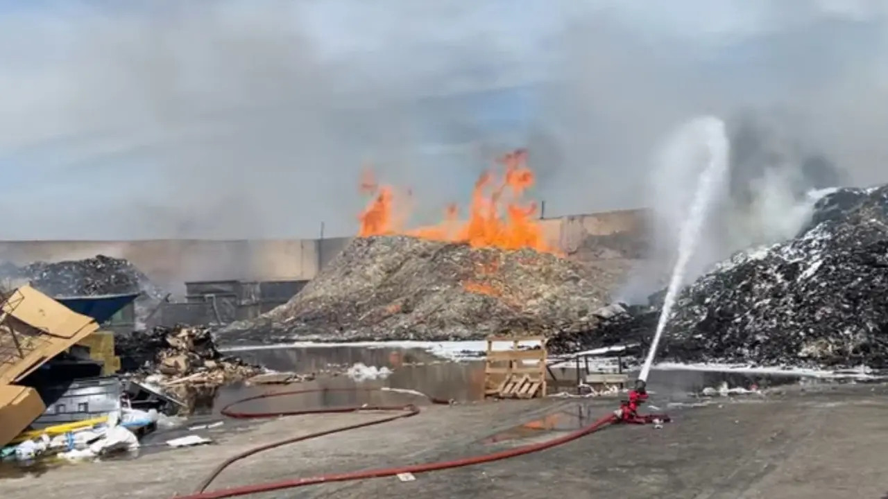 Aparatoso incendio en en el exterior de una nave de Alcalá de Henares En una zona en la que había acumulados unos 1.000 metros cúbicos de material par reciclaje. Redacción MiraCorredor 28/06/21