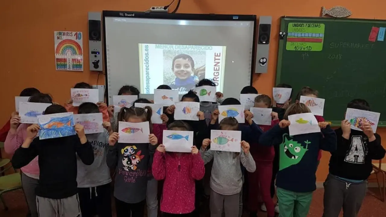 Los alumnos han dibujado un pescaíto para pedir a Gabriel que vuelva a casa.
