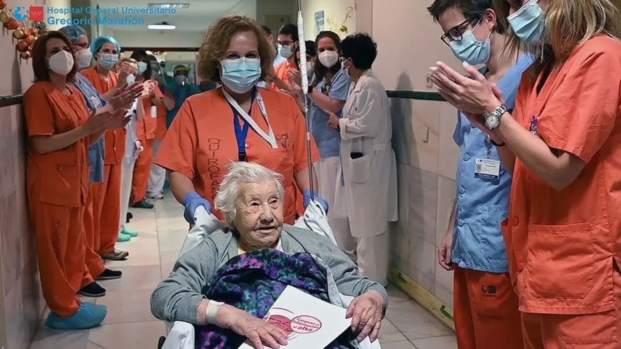 Elena, de 104 años, recibe el alta en Madrid tras superar el coronavirus Ha recibido el alta en el Gregorio Marañón donde ha sido tratada de una neumonía por Covid-19. Redacción MiraCorredor 14/12/20