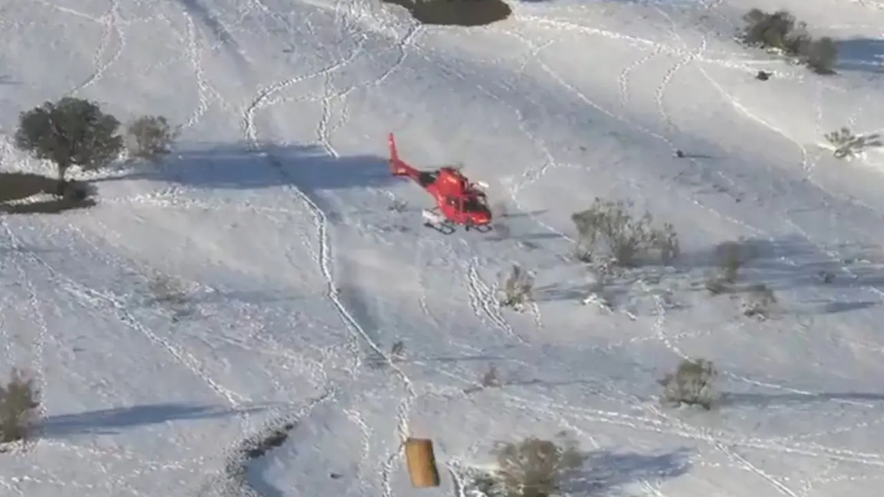 Madrid alimenta desde el aire a 400 animales aislados por la nieve Mediante un helicóptero del GERA y con ayuda de los Agentes Forestales. Redacción MiraCorredor 13/01/21