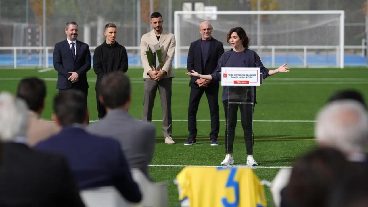 Ayuso entrega a la Selección española de fútbol el Premio Internacional del Deporte Un galardón que reconoce el triunfo del «sacrificio, la ambición y la humildad», ha destacado la presidenta madrileña. Redacción MiraCorredor 07/10/24