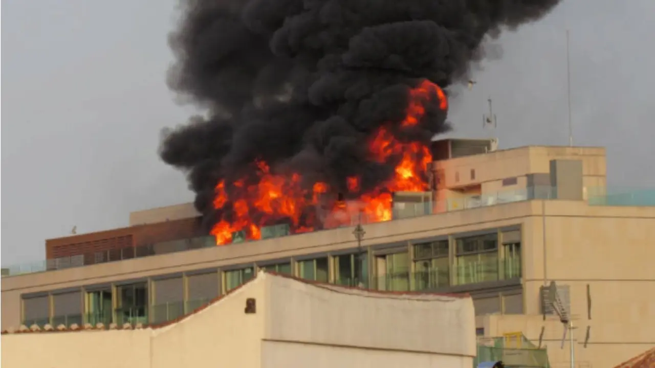Espectacular incendio en la azotea de un edifico de la Gran Vía El fuego ha obligado a cortar el tráfico durante varias horas. Redacción MiraCorredor 24/04/17
